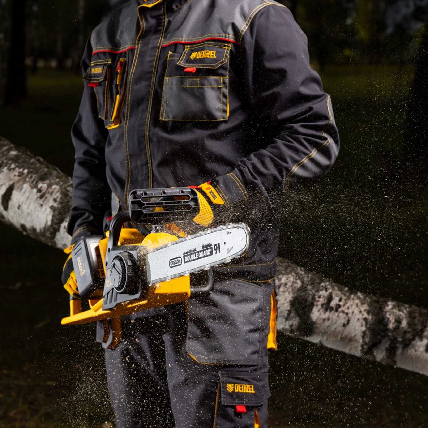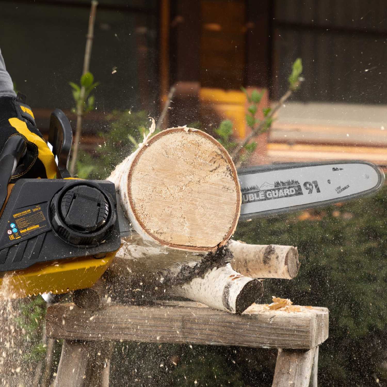 Идеальный сценарий — прерывистая работа на дачном участке: обрезка кустарника, подготовка дров для костра, спил деревьев до 20 см диаметром, расчистка сухостоя. В режиме "включил-отпилил-выключил" заряда хватает на 1.5-2 часа. Пила незаменима в закрытых помещениях (гаражи, сараи) благодаря отсутствию выхлопов и низкому шуму (68 дБ против 105 дБ у бензопил). Абсолютно не подходит для валки леса, заготовки большого объема дров или продолжительной распиловки толстомерных бревен. Оптимальна для владельцев других инструментов Denzel с совместимыми АКБ.