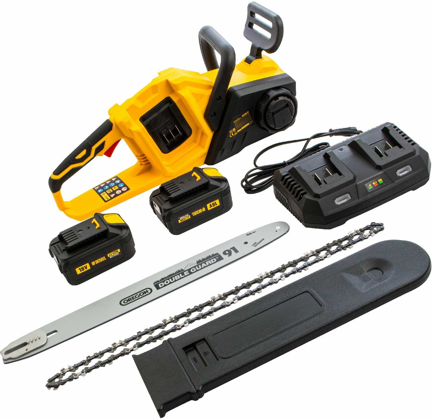 Дополнительная информация : | бесщёточный двигатель, одновременная работа от двух батарей 18 В, толщина ведущего звена цепи: 1.3 мм количество звеньев: 56 шт. |