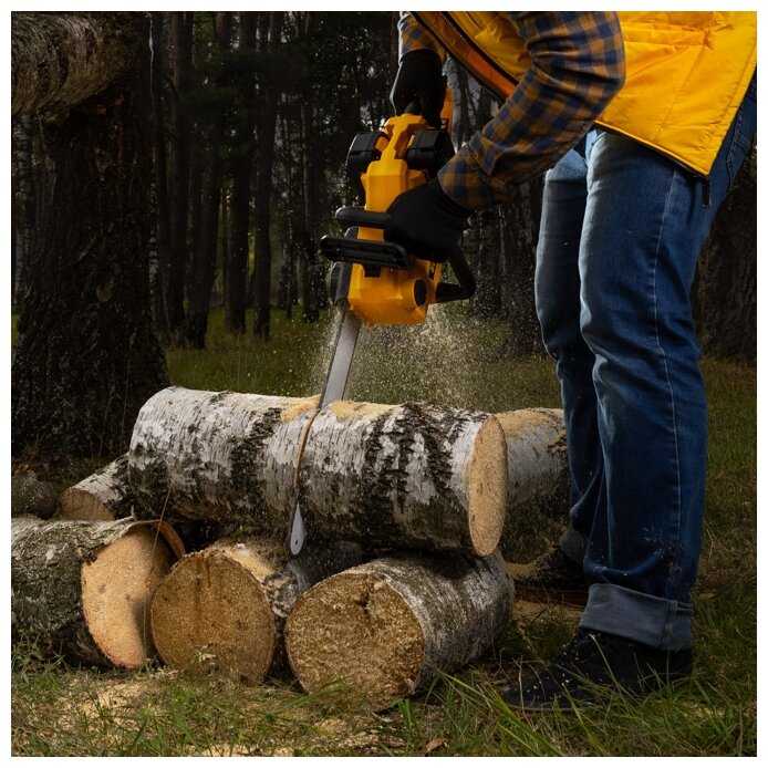 На фоне сетевых электропил выигрывает за счет мобильности (отсутствие проводов) и безопасности. Проигрывает бензиновым моделям в мощности, но превосходит их в экологичности, простоте обслуживания и весе. Ключевое отличие от конкурентов в сегменте — система параллельного использования двух АКБ, обеспечивающая стабильные 36В. Цепь Oregon премиального класса — преимущество перед аналогами с базовыми цепями. Существенный минус — отсутствие механического тормоза цепи: при срабатывании защиты вращение останавливается только на двигателе, а цепь продолжает движение по инерции, что повышает риск травм.