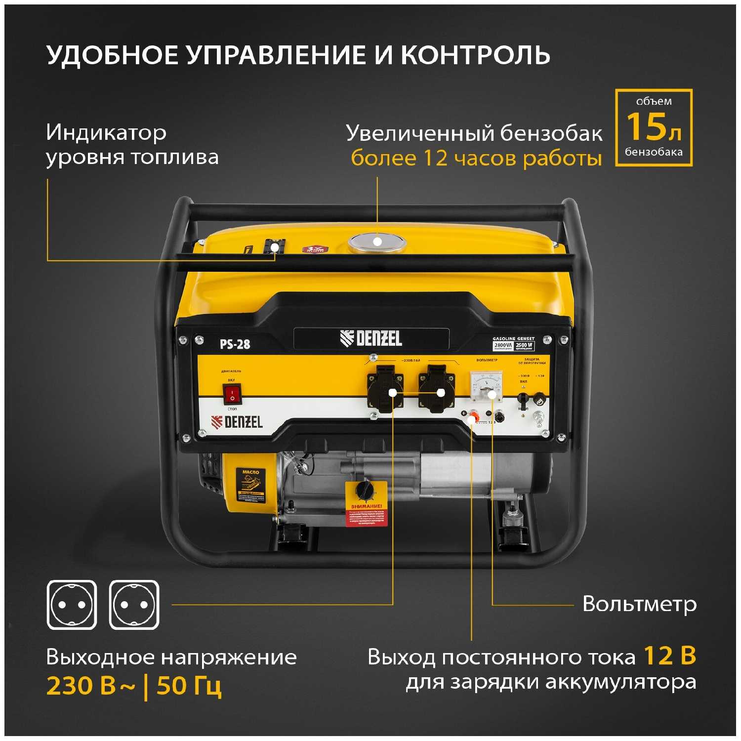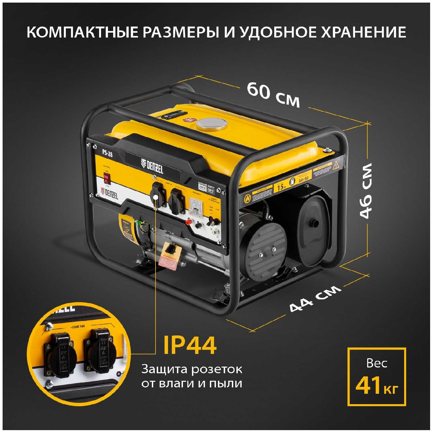 Применяю для работы в мастерской. Подключал несколько инструментов одновременно, справляется без труда. Корпус крепкий, управление понятное. Топливный бак вместительный, хватает на долгое время.