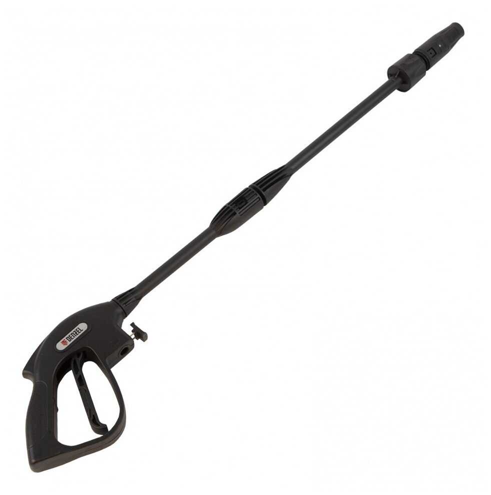 Стандартная комплектация включает пистолет-распылитель, шланг высокого давления 5 метров, бачок для моющих средств и переходники для подключения. Пользователи хвалят плотный и прочный шланг, который выдерживает случайные наезды автомобилем. Некоторые отмечают неудобство крепления пистолета на корпусе и неидеальное качество пеногенератора. Для серьезной пенной мойки рекомендуется докупать дополнительный пеногенератор. -