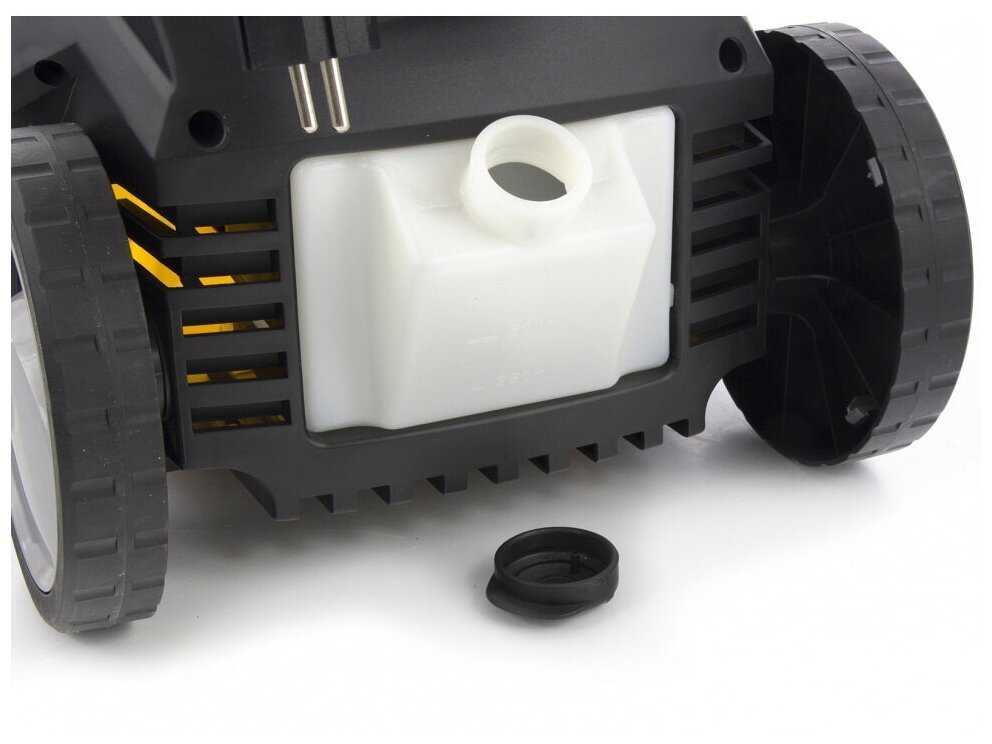 - Бачок для моющего средства позволяет наносить пену равномерно, улучшая удаление стойкой грязи без дополнительных покупок.