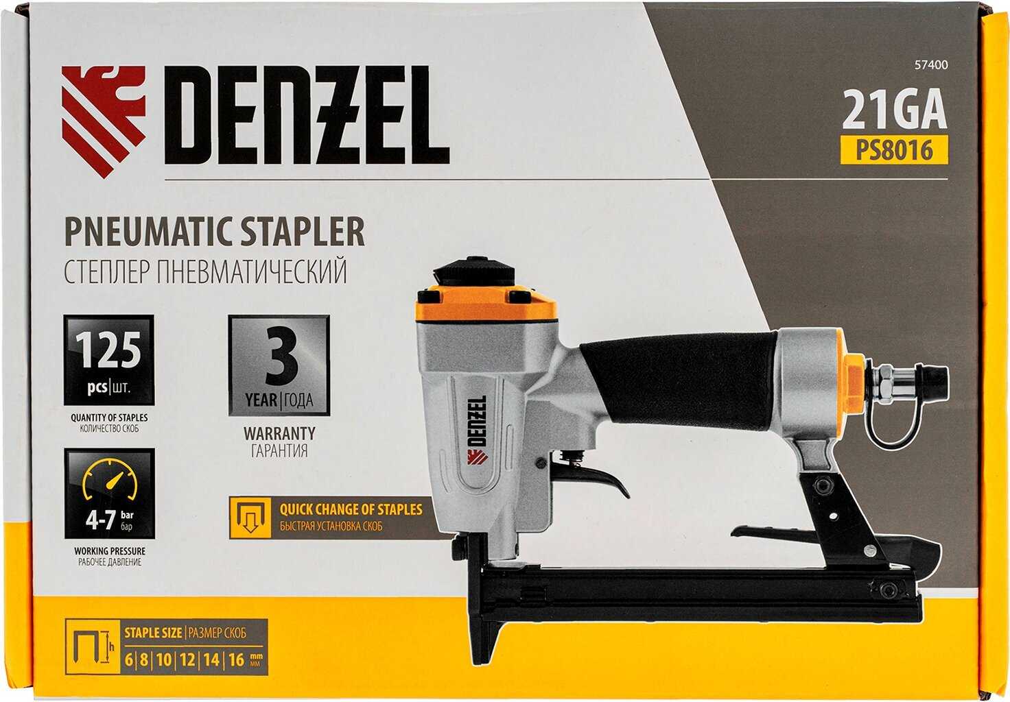 Отзывы о Степлер пневматический Denzel PS8016 для прямоугольных скоб 21GA от 6 до 16 мм (57400)