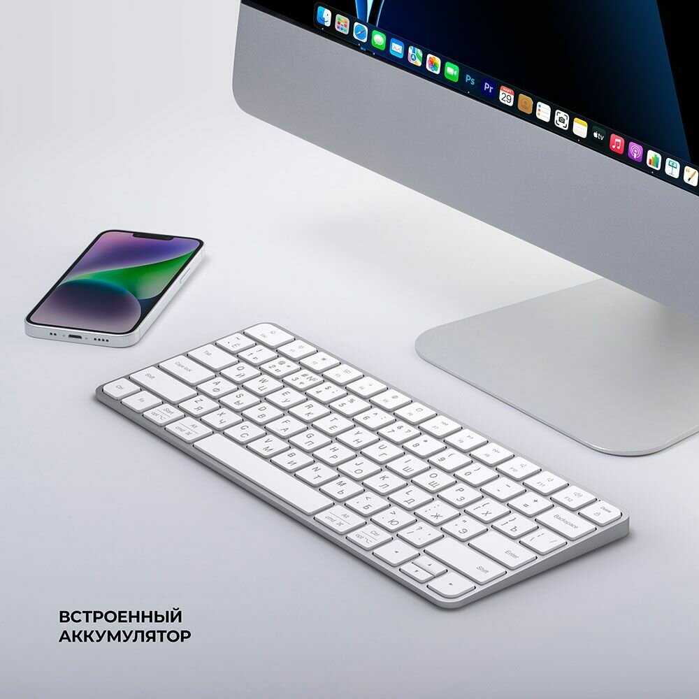 - Стильный внешний вид, визуально похож на оригинальную клавиатуру Apple.