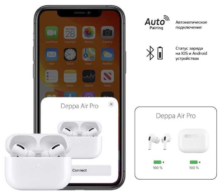 - Быстрое сопряжение с iPhone (анимация как у AirPods), радиус действия до 10 метров.