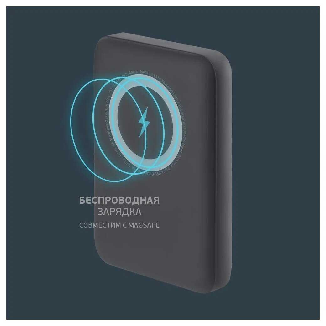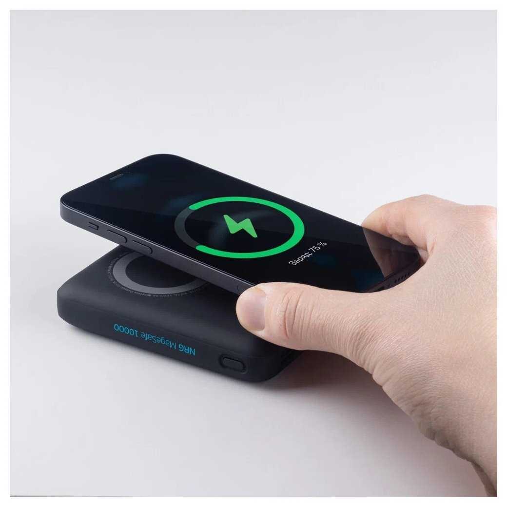 - + Большая ёмкость, заряжал iPhone 12 Pro Max 2 раза полностью, осталось ещё 1 деление. Хороший магнит MagSafe (но с тонким чехлом, либо вообще без чехла)