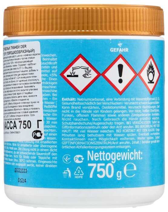 - Стоимость банки 940 г (около 10-12 евро) кажется завышенной для добавки к стиральному порошку, особенно при частом использовании.