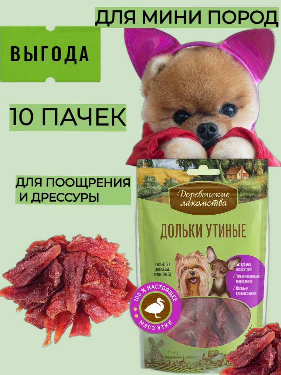 Обзор Деревенские Лакомства Грудки утиные для мини-пород*: