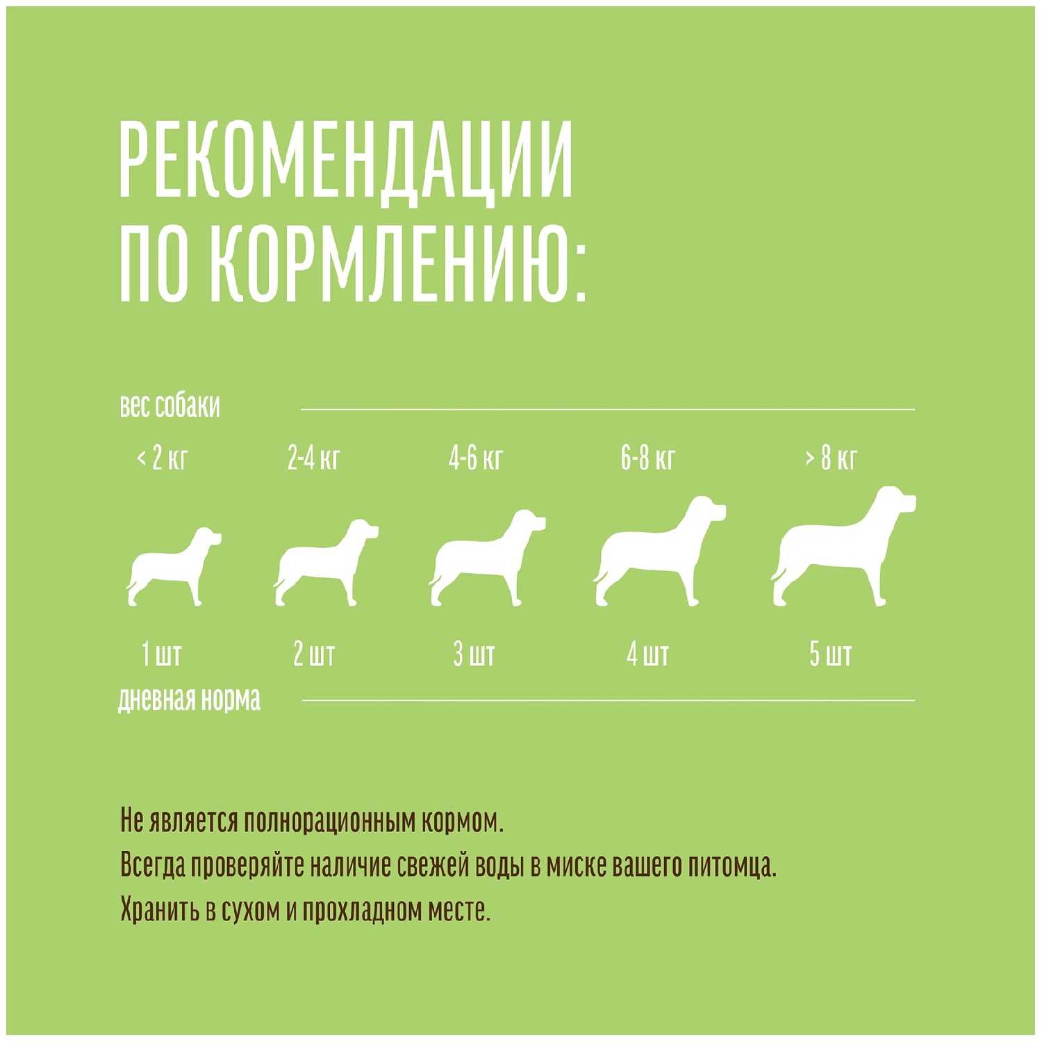 Норма употребления : | 2–6 шт в день в зависимости от веса собаки |