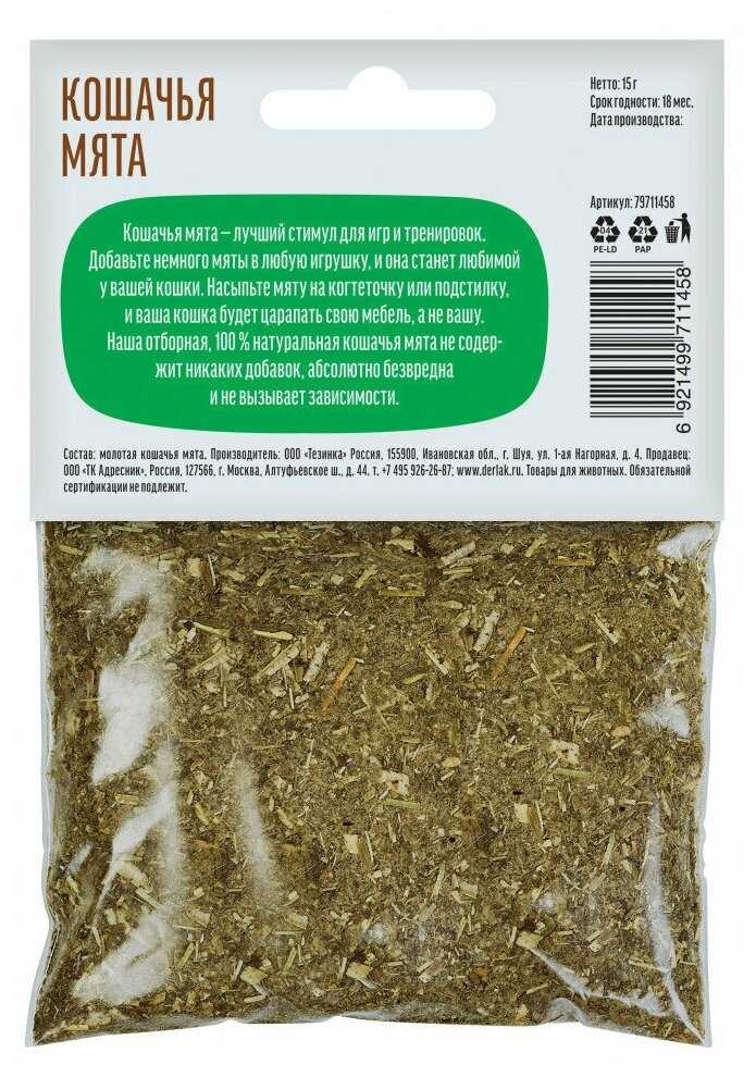 - + Можно использовать в разных целях: натирать игрушки, посыпать лежанку. Оказывает лёгкое седативное действие.