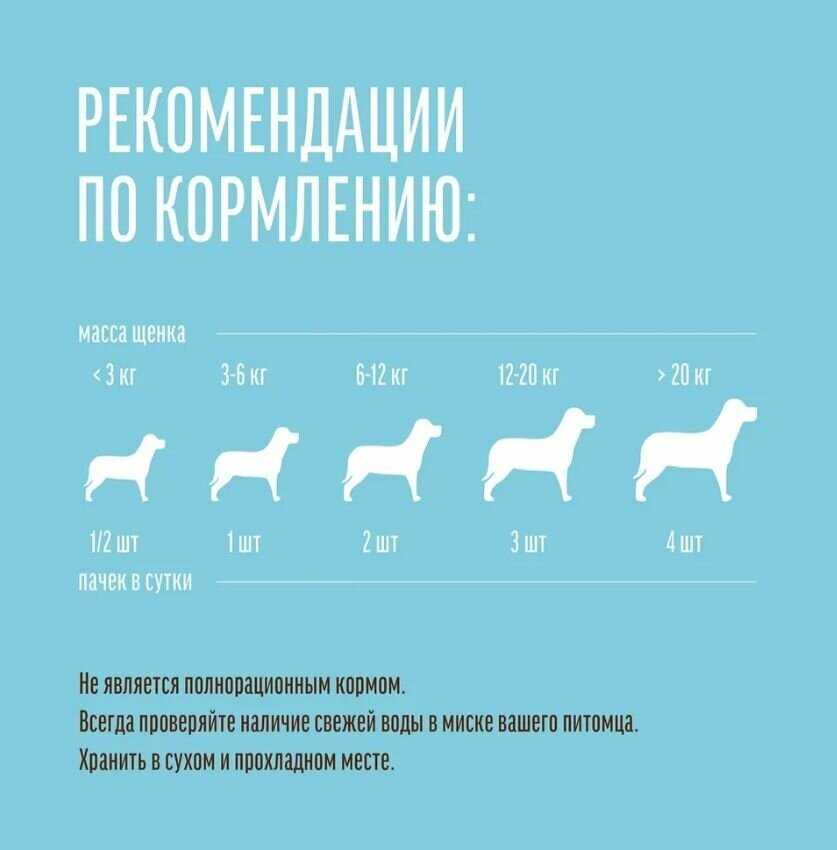 Норма употребления : | 1–10 шт в день в зависимости от веса собаки |