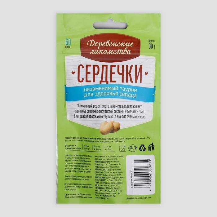 13 отзывов пользователей o Деревенские Лакомства Сердечки и незаменимый таурин
