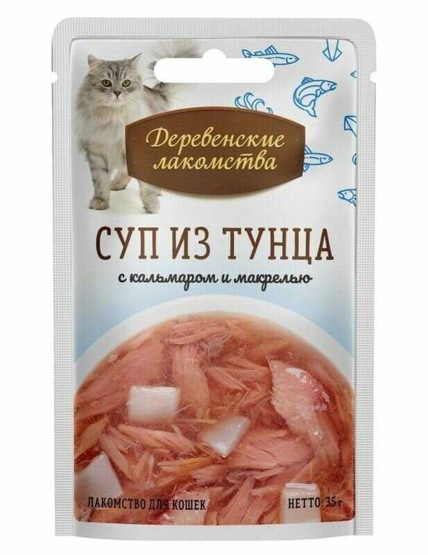 35 отзывов пользователей o Деревенские Лакомства Суп из тунца с кальмаром и макрелью