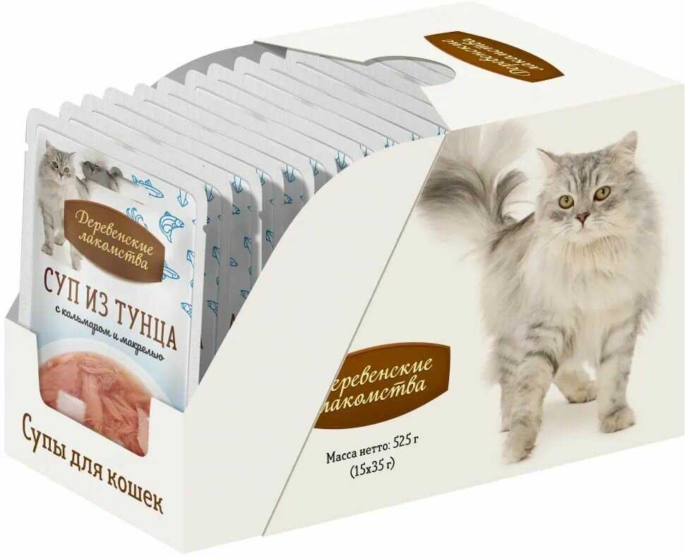35 отзывов пользователей o Деревенские Лакомства Суп из тунца с кальмаром и макрелью