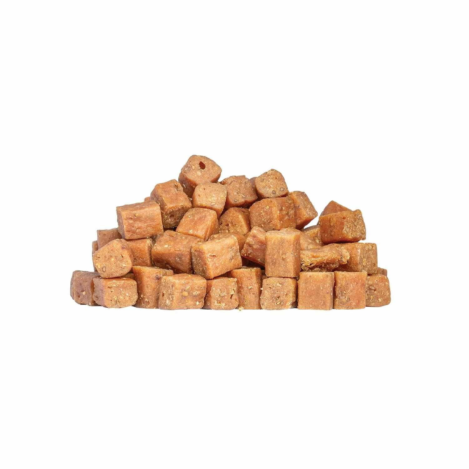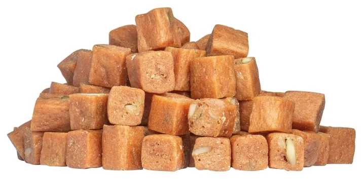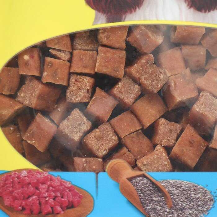 - + Удобно давать маленьким собакам, кубики небольшие, им удобно жевать