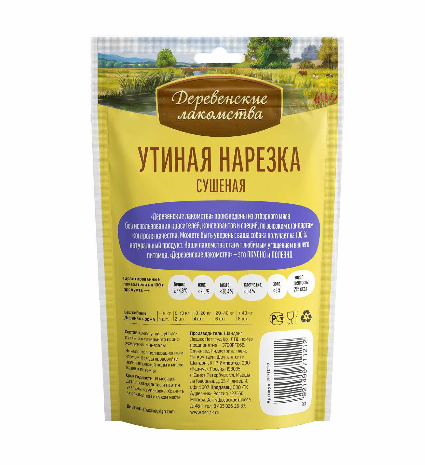 Характеристи Деревенские Лакомства Утиная нарезка сушеная