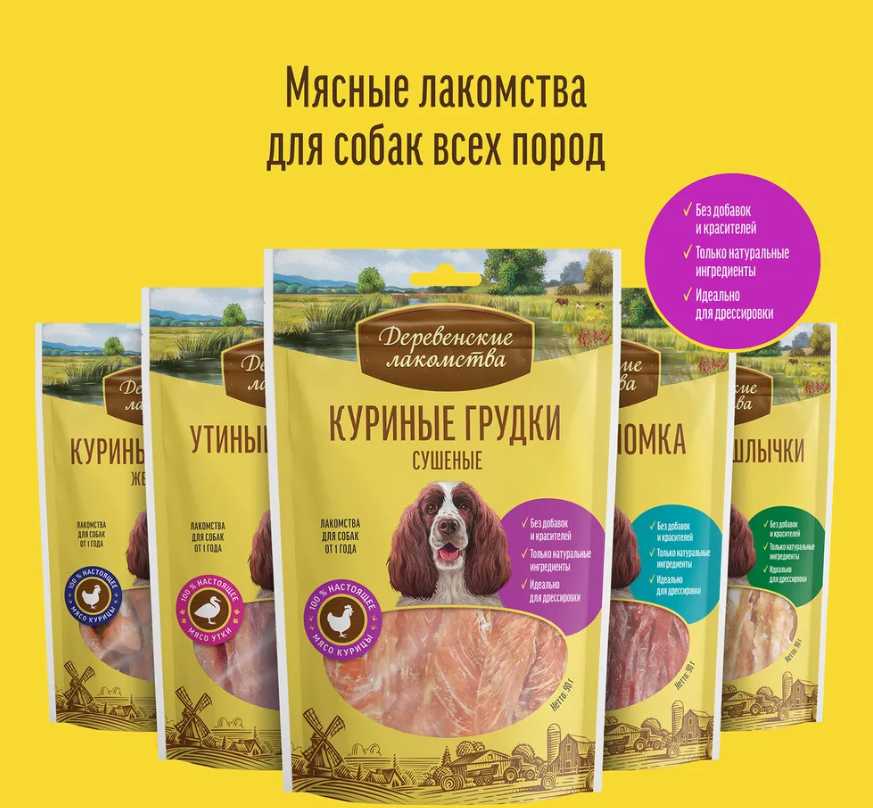 Отзывы о Лакомство для собак Деревенские лакомства Утиная нарезка сушеная