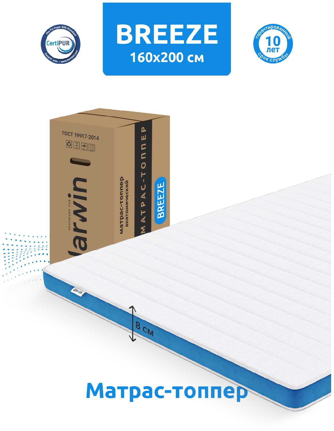 Отзывы о Матрас-топпер двухсторонний Darwin Breeze с эффектом памяти, анатомический, ортопедический, высота 8 см