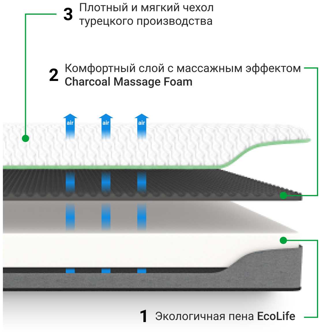 - Подстраивается под контуры тела, упругий, но не слишком мягкий.