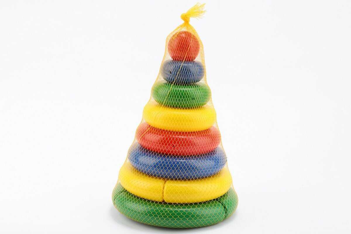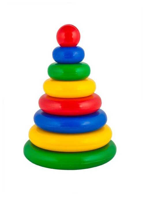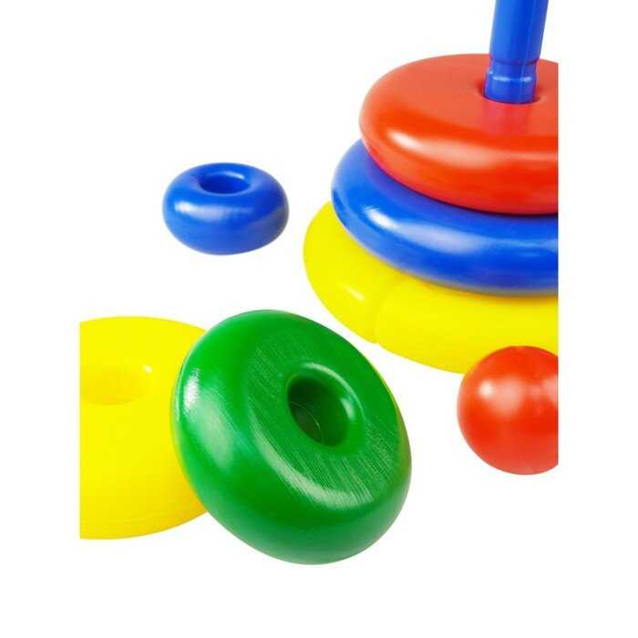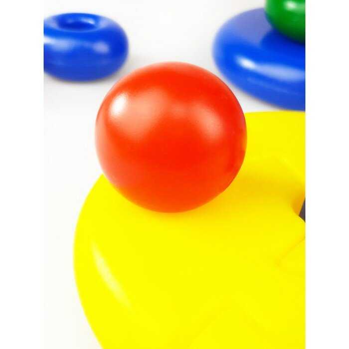 - + большая, тяжеленькая, верхушка шарик, средняя палочка разбирается на две половинки, можно сделать пирамидку поменьше.