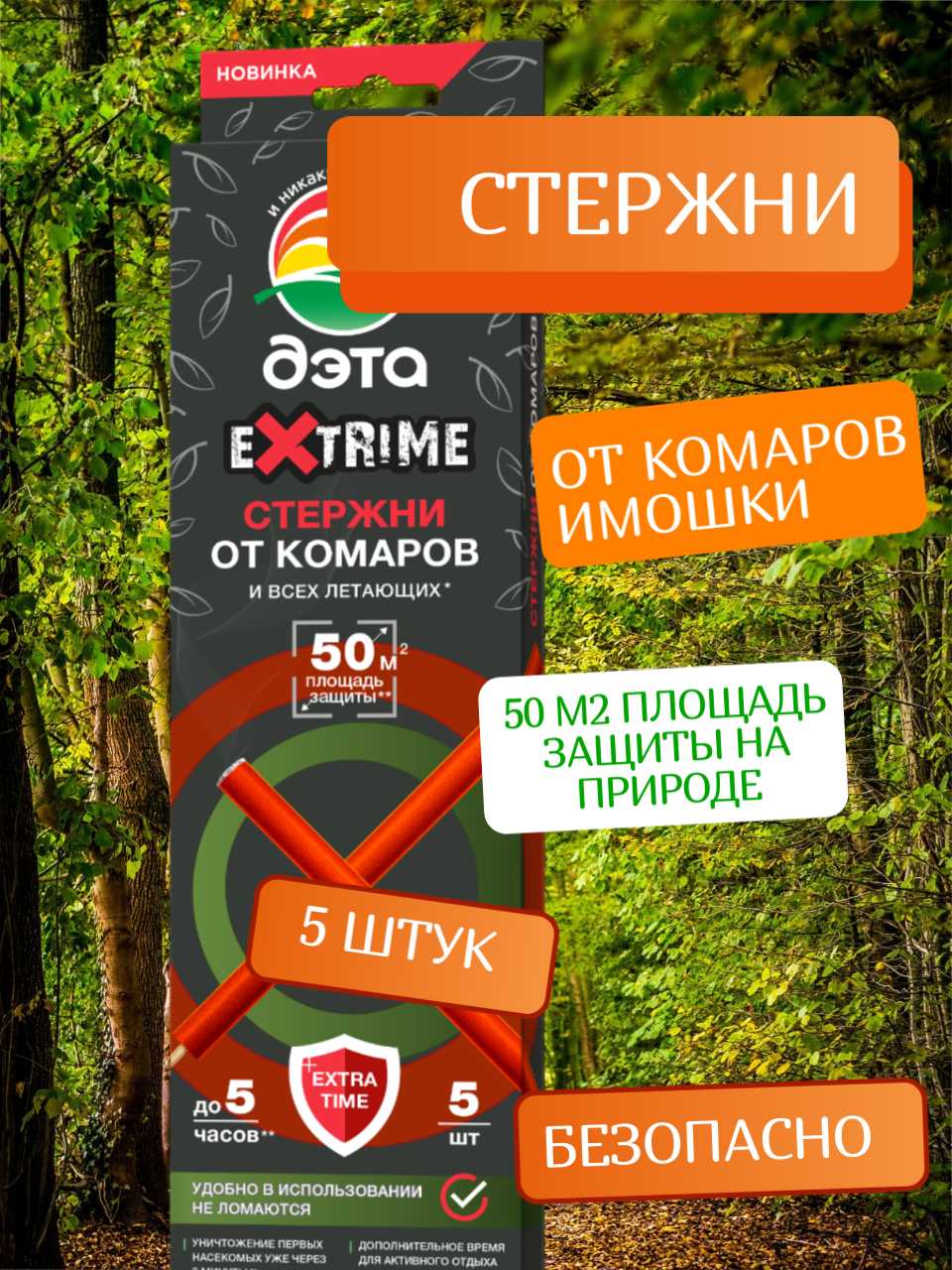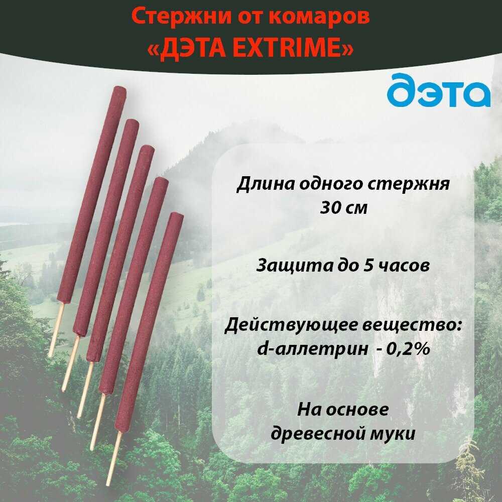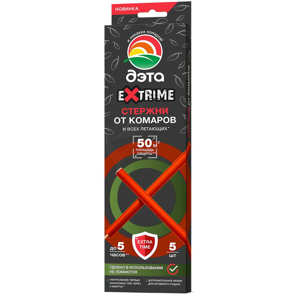 | Подробная комплектация : | Стрежни от комаров и летающих насекомых ДЭТА EXTRIME, 5 шт. в упаковке - 1 шт. |