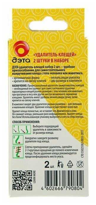 Дополнительная информация : | Удалитель клещей «Дэта», 2 шт. |