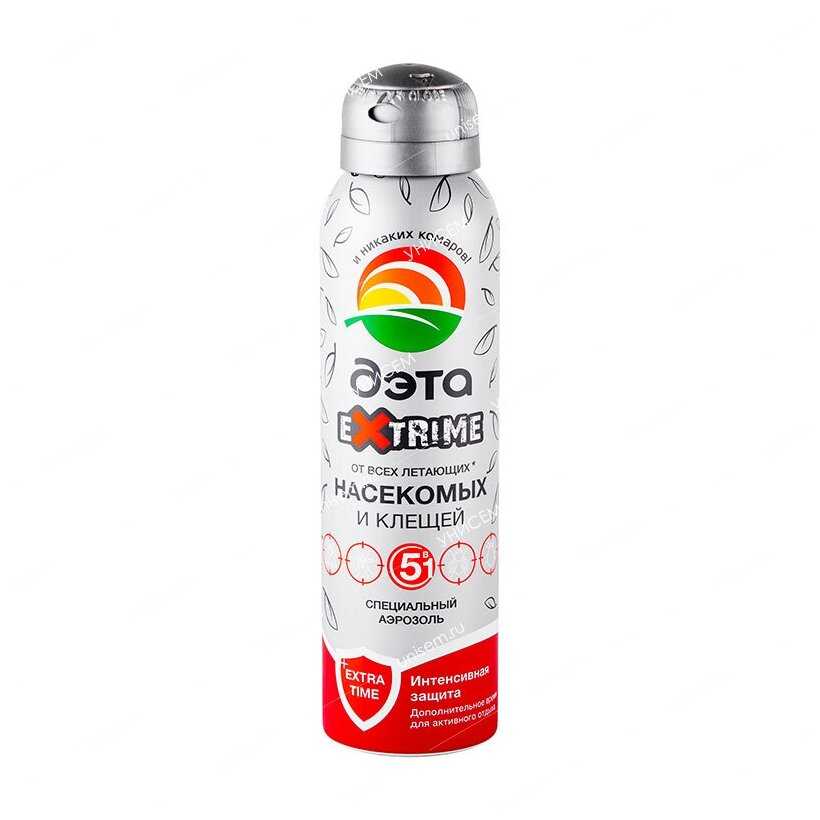 | Подробная комплектация : | Аэрозоль Экстрим 5 в 1 от комаров, слепней, блох, мошек, мокрецов, москитов и иксодовых клещей, репеллент ДЭТА, 150мл - 1 шт. |