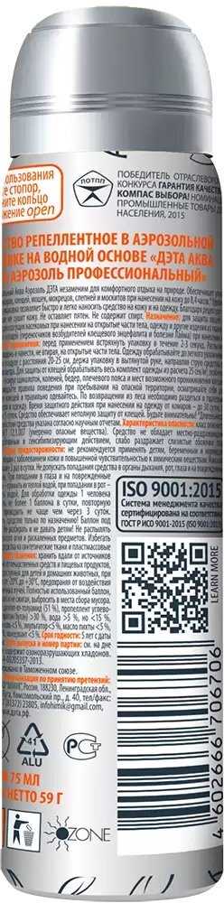 Дополнительная информация : | действует от летающих насекомых до 5 часов, от клещей до 5 суток при нанесении на одежду |