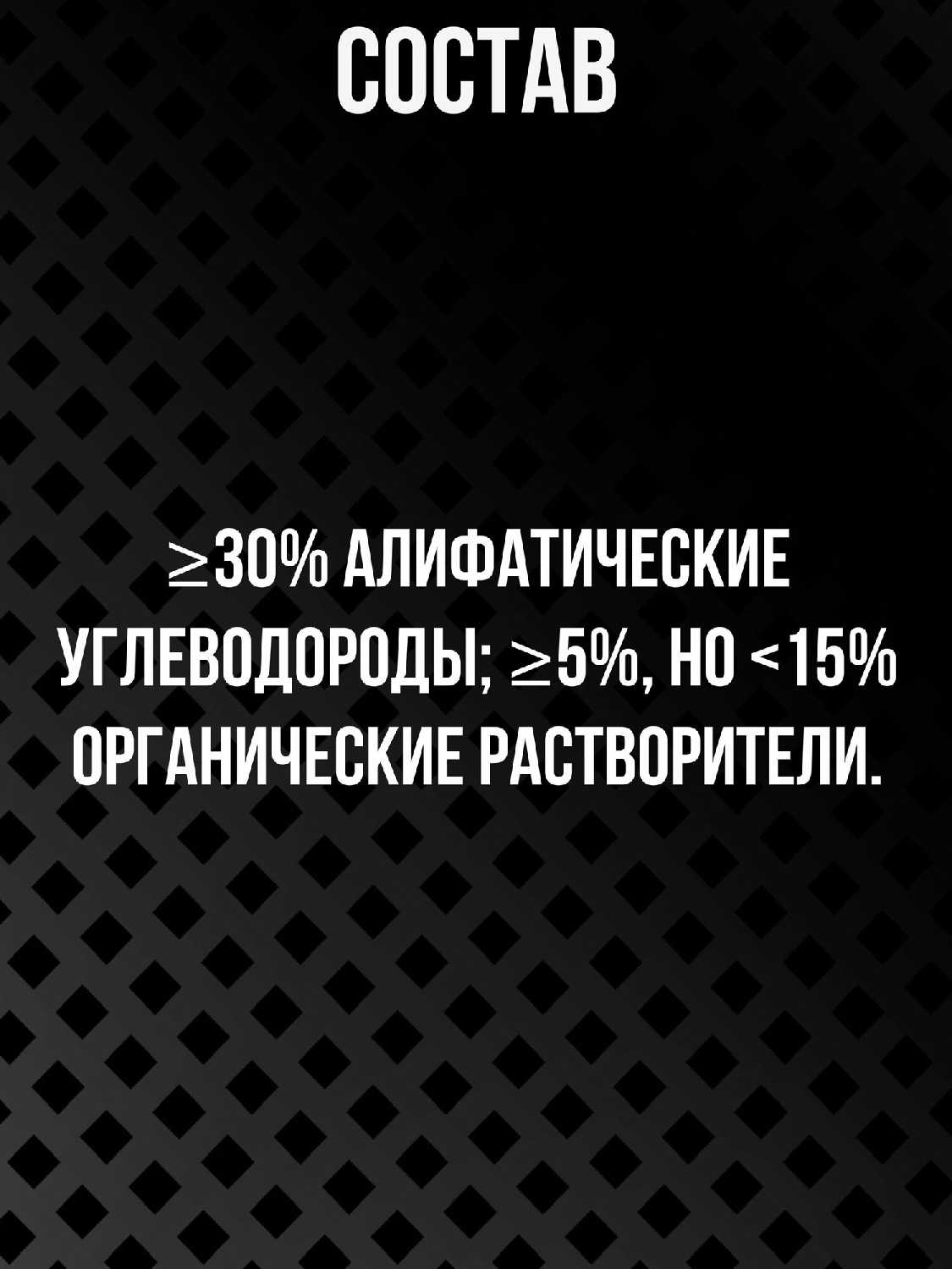 | Состав : | ≥30% алифатические углеводороды, ≥15% но <30% органические растворители |