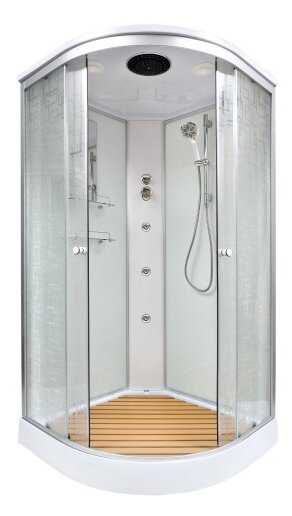- + За свою цену кабина просто отличная. Гидромассаж просто божественный!!! Живем с мамой, она пожилой человек, а высота поддона у этой кабины всего 15 см. Заходить-выходить удобно. Дно не скользкое, вся фурнитура отличная. Внутри очень просторно. Кабиной довольны.