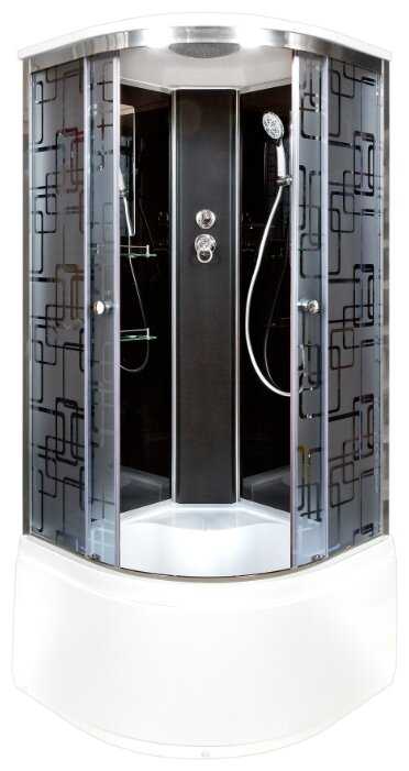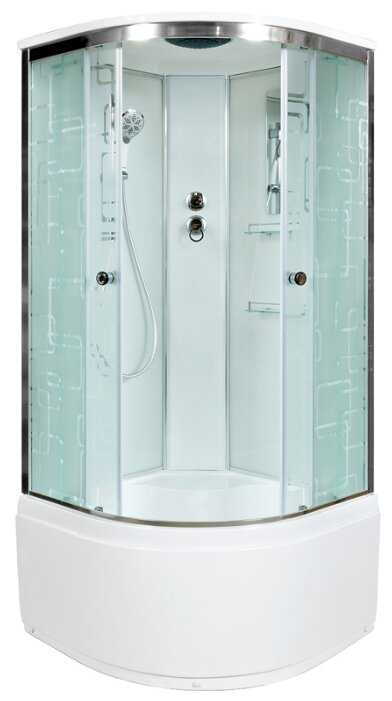 - + Симпатичный узор на стеклах, несколько полoк внутри, зеркало. Большой, глубокий поддон с клапаном. Ноль протечек.