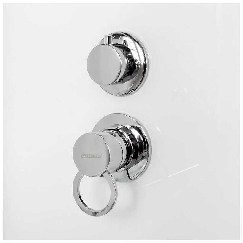 - + Просторная душевая кабина, вернее, большой и комфортный бокс. Современный, минималистичный дизайн. Раздвижные дверцы с металлическими роликами. Двери и стенки выполнены из матового закаленного стекла.
