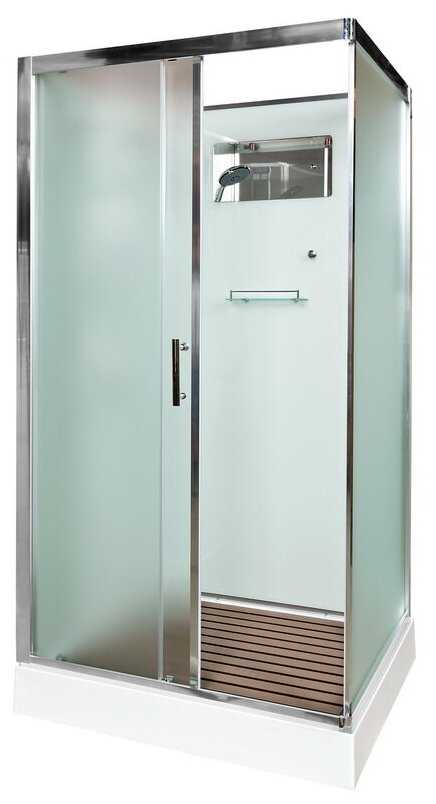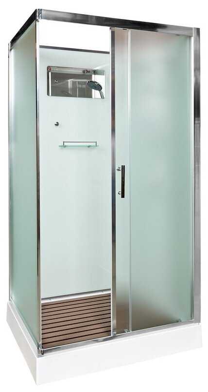- + Визуально понравился этот вариант. Как-то поинтереснее, чем с закруглёнными формами. Да и по размеру идеально подходил в наш санузел. Отсутствие крыши ни чуть не смутило. Скорее наоборот. Не люблю мыться в духоте, сразу в висках стучать начинает. Тут такой проблемы нет.