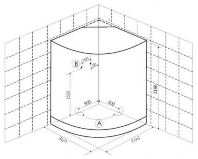Характеристи Deto D80S с электрикой высокий поддон 80см*80см
