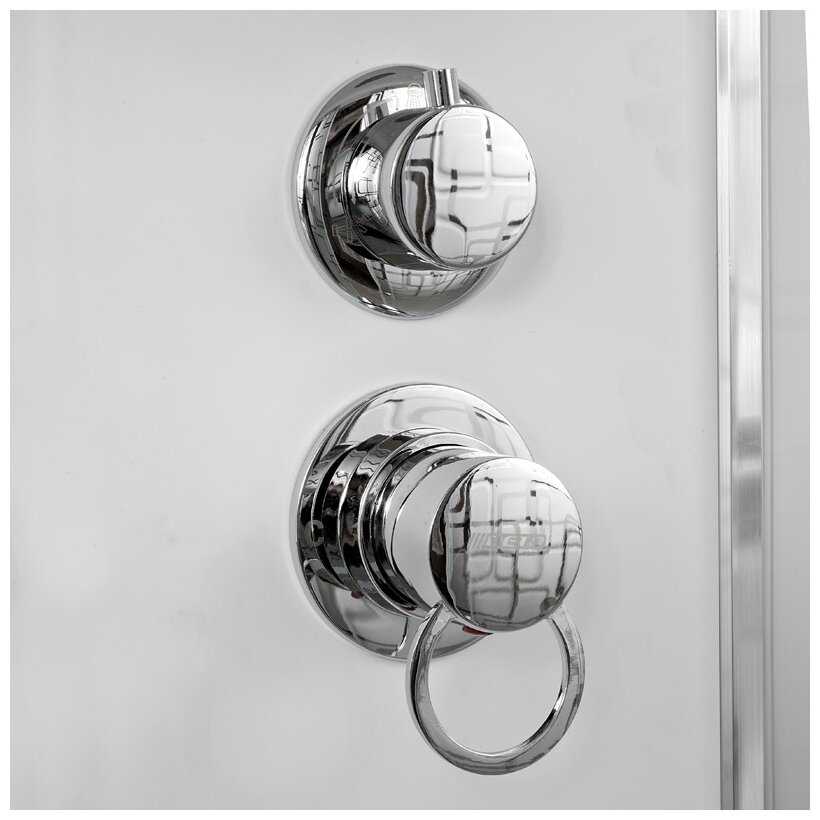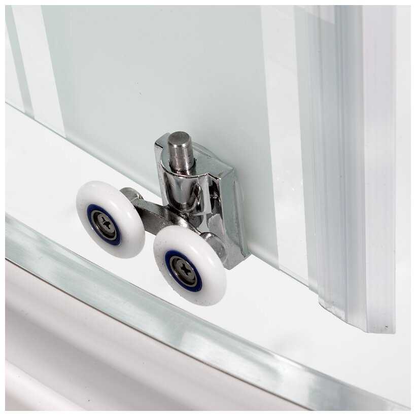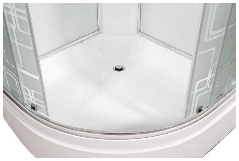 безсиликоновая сборка, усиленный акриловый поддон высотой 27 см, закалённое стекло, металлические двойные ролики, система клик-клак с гидрозатвором