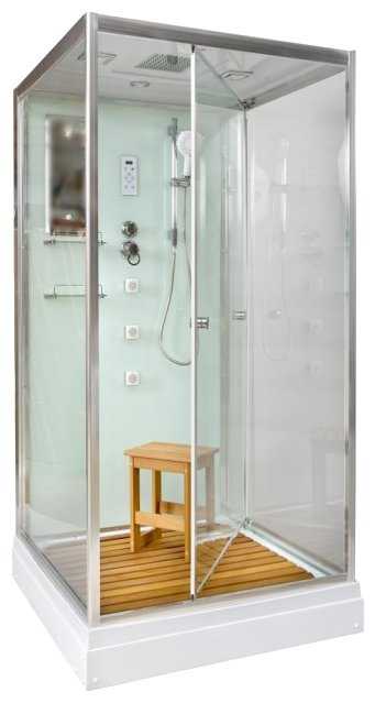 - + Места внутри много. Деревянный, нескользкий поддон. Управление с помощью сенсорной панели простое, разберется даже ребенок. Стенки из толстого стекла. Лейка для тропического душа большая, поливает реально как в тропиках=)