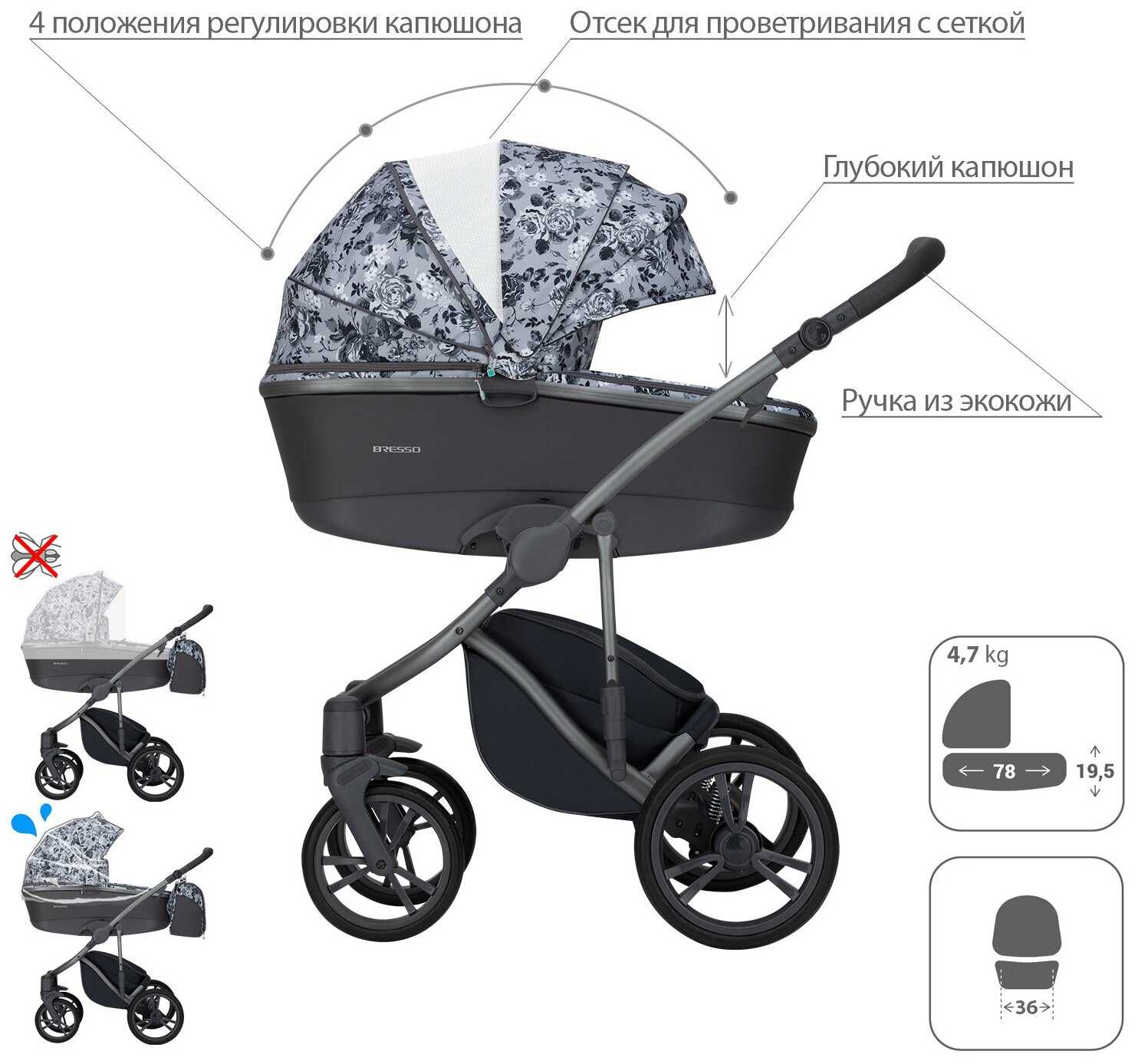 babylux Future 3 в 1 White & Sliver NEW с автокреслом, чёрный матрасик