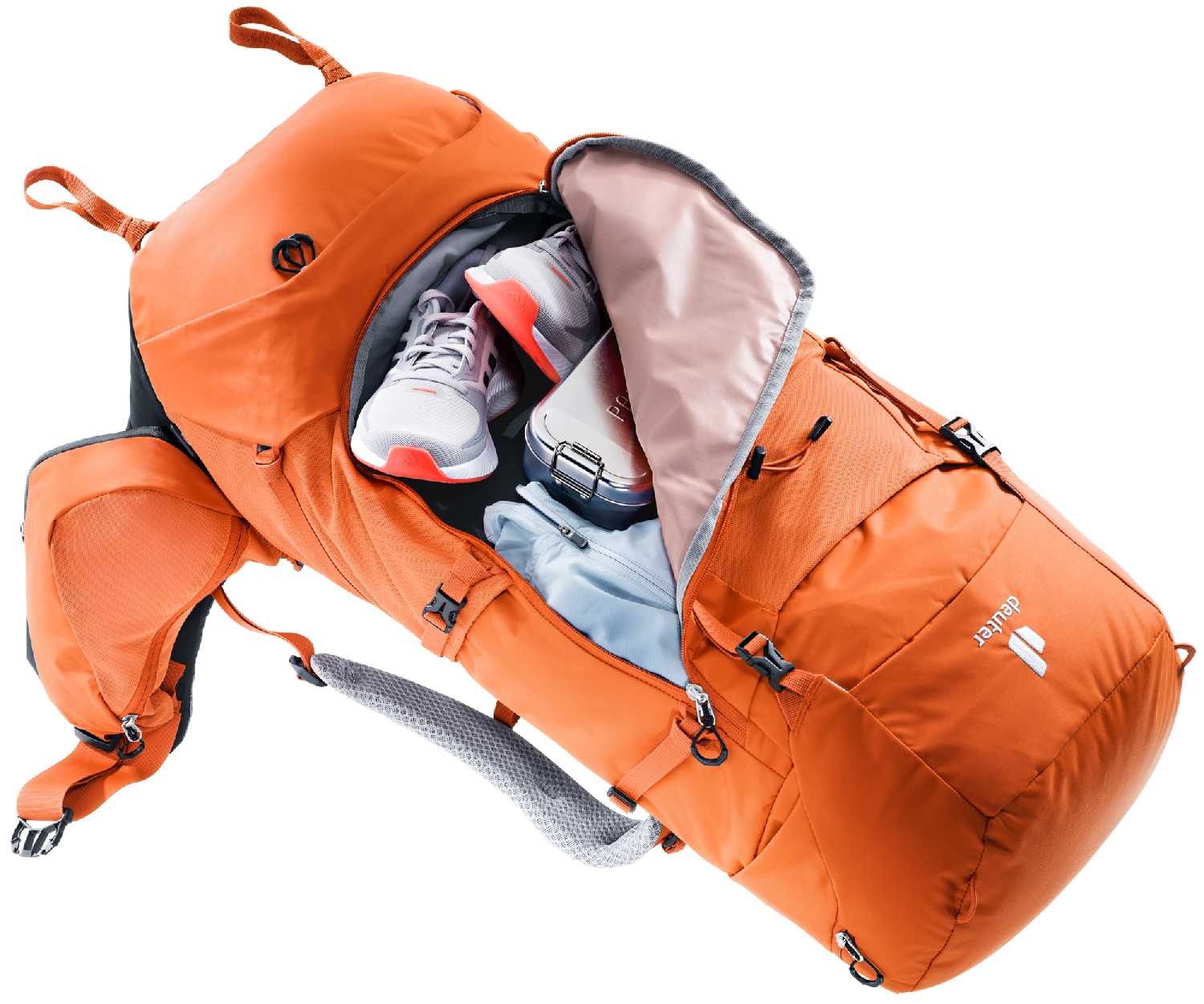 - + Прежде всего - качество изготовления и материалов (а их в рюкзаке использовано 3 типа). Пластиковая фурнитура не вызывает опасений поломки, а молнии YKK в представлении не нуждаются; "Женская" модель - спасибо Deuter, что думаете о нас ;) Широкий диапазон регулировок - можно подогнать рюкзак по всем направлениям; Неплохие возможности для внешней навески; Нижний "подвал" (с расстегивающейся перегородкой между основным отсеком) и передний вход. Удобно, когда надо достать какую-то вещь, не разгружая весь рюкзак; Дополнительные +15 литров, когда нужно и значительно более компактный размер рюкзака без них; Удобная и функциональная поясная поддержка. Рюкзак прекрасно держится на бедрах, даже если полностью разгрузить плечи; Мягкая и удобная спинка с алюминиевым каркасом; Вентиляция спинки; Накидка от дождя; Съемный "чердак" (верхняя крышка), что позволяет использовать ее как отдельный маленький рюкзачок; Дополнительные карманы для питьевой системы (но можно использовать и просто, как карманы); Кармашки на поясном ремне.