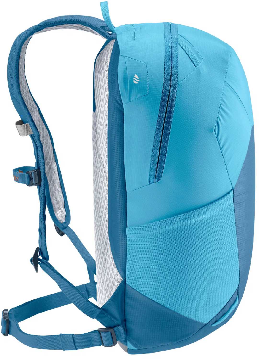 Покупался для школьника 4 класса, по размеру подошел. Папки и тетради формата А4 в него входят. Сын доволен. При езде на велосипеде спина конечно тоже потеет но не так сильно и под лямками майка сухая. Покупкой доволен. За пол года частого использования проблем нет. Стирается легко.