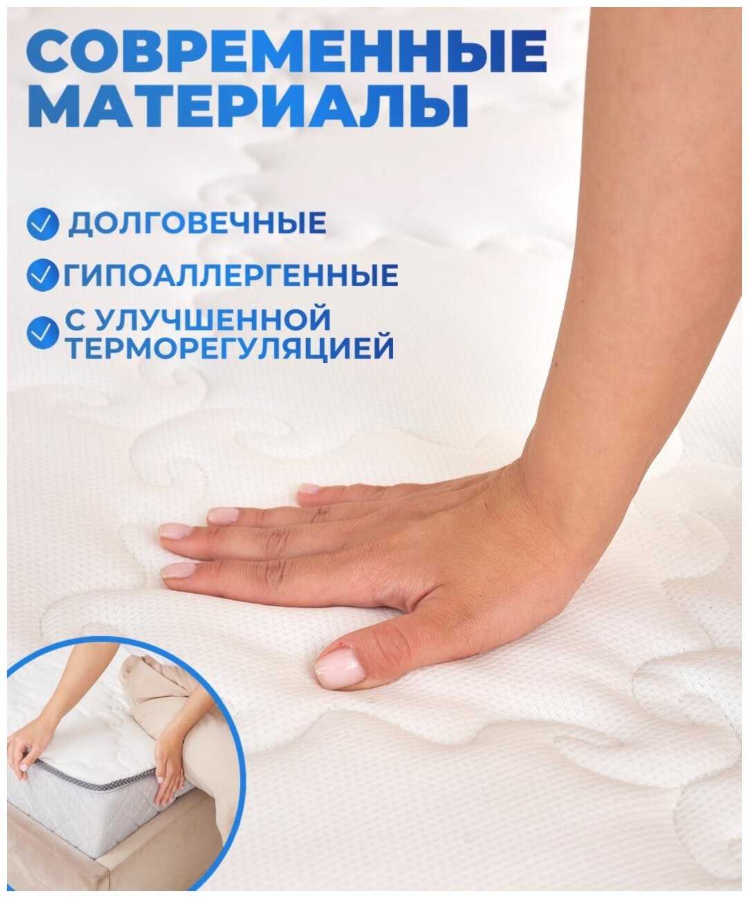 - Жесткость матраса (средняя или умеренно высокая) обеспечивает правильное положение тела во время сна.