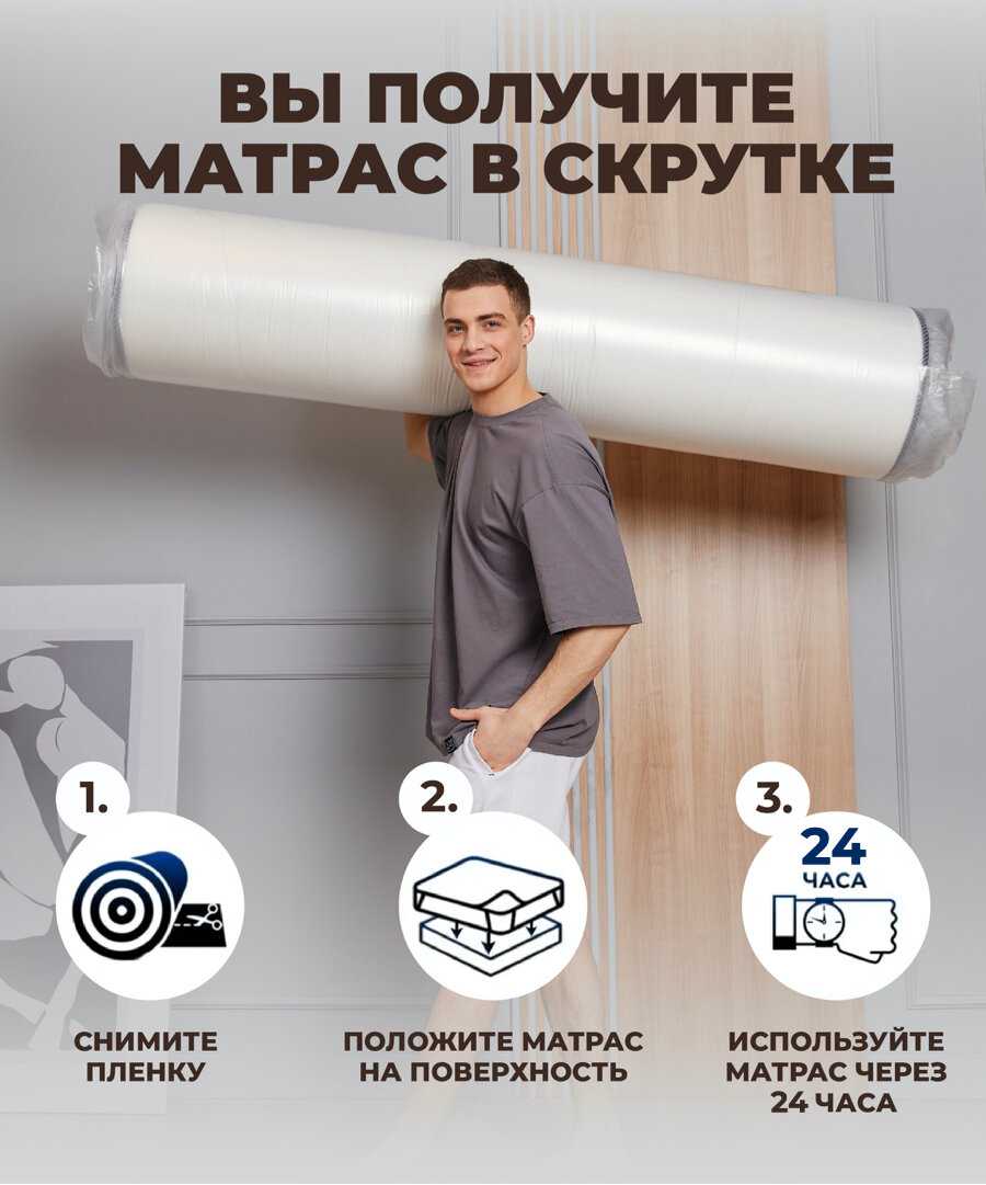 Большинство пользователей отмечает, что матрас полностью расправляется в течение 10 минут – 2 часов. Для ускорения процесса достаточно оставить его в проветриваемом помещении. В редких случаях требуется до 12 часов, но сон возможен уже в первые сутки после распаковки. -