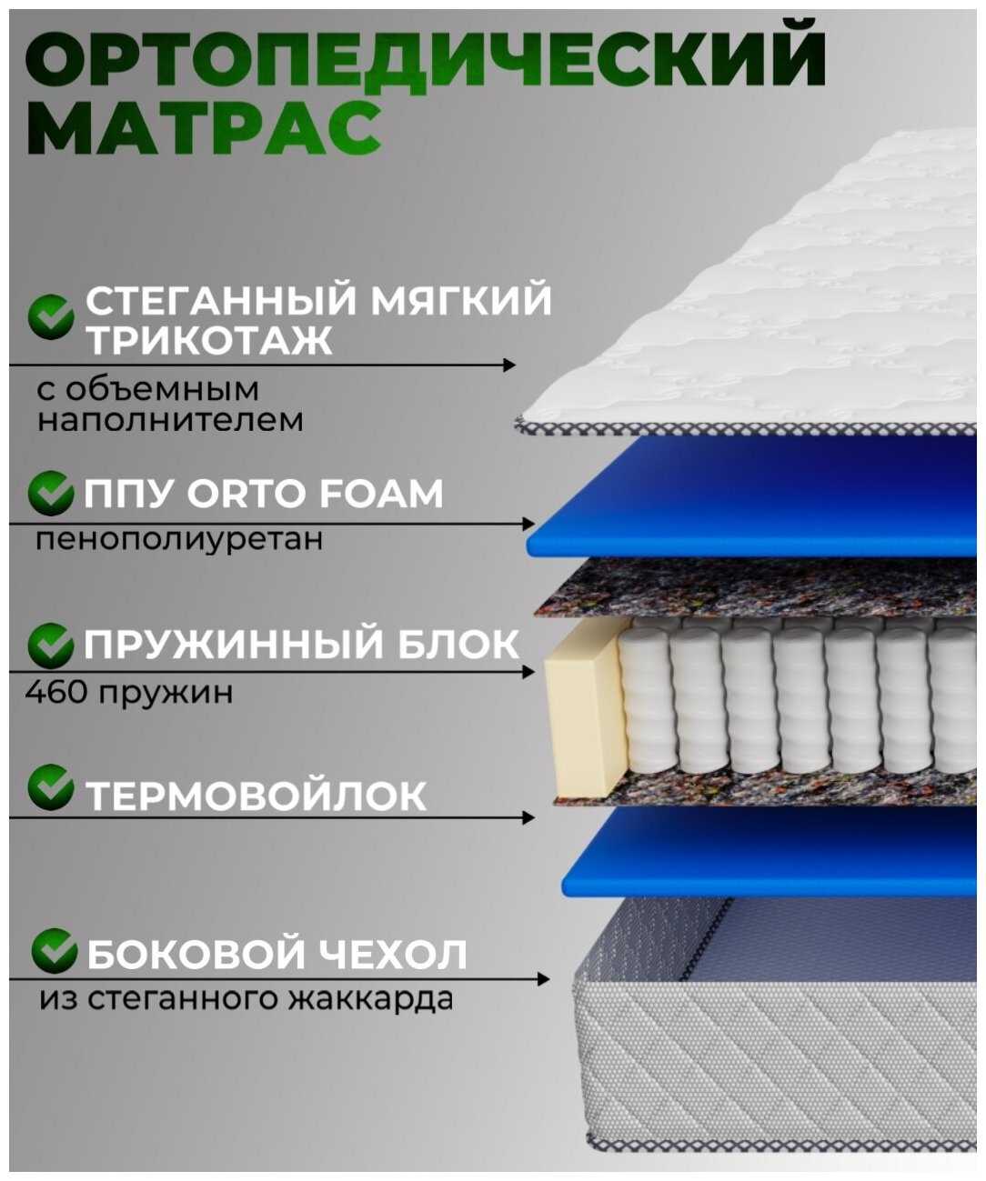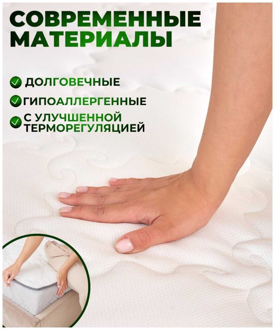 - Технология: термоскрепленные пружины в индивидуальных кармашках и плотный кокосовый койр (1.5 см) между слоями.