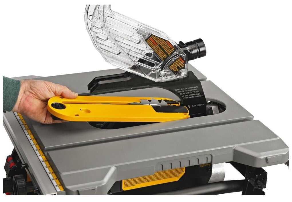 - - Транспортир ни о чем конечно, сильно люфтит, убрал его в коробку, поставил другой с подстрокой и более удобный, еще в коплекте второй расклинивающий нож с пластиковыми дужками и пылеотводом,, если честно не знаю зачем он нужен, вообще бесполезный, но это больше придирки, чем недостаток... на этом недостатки кончились