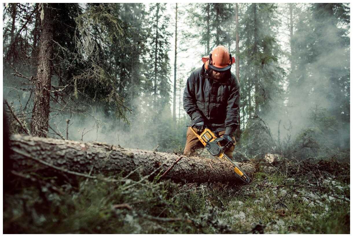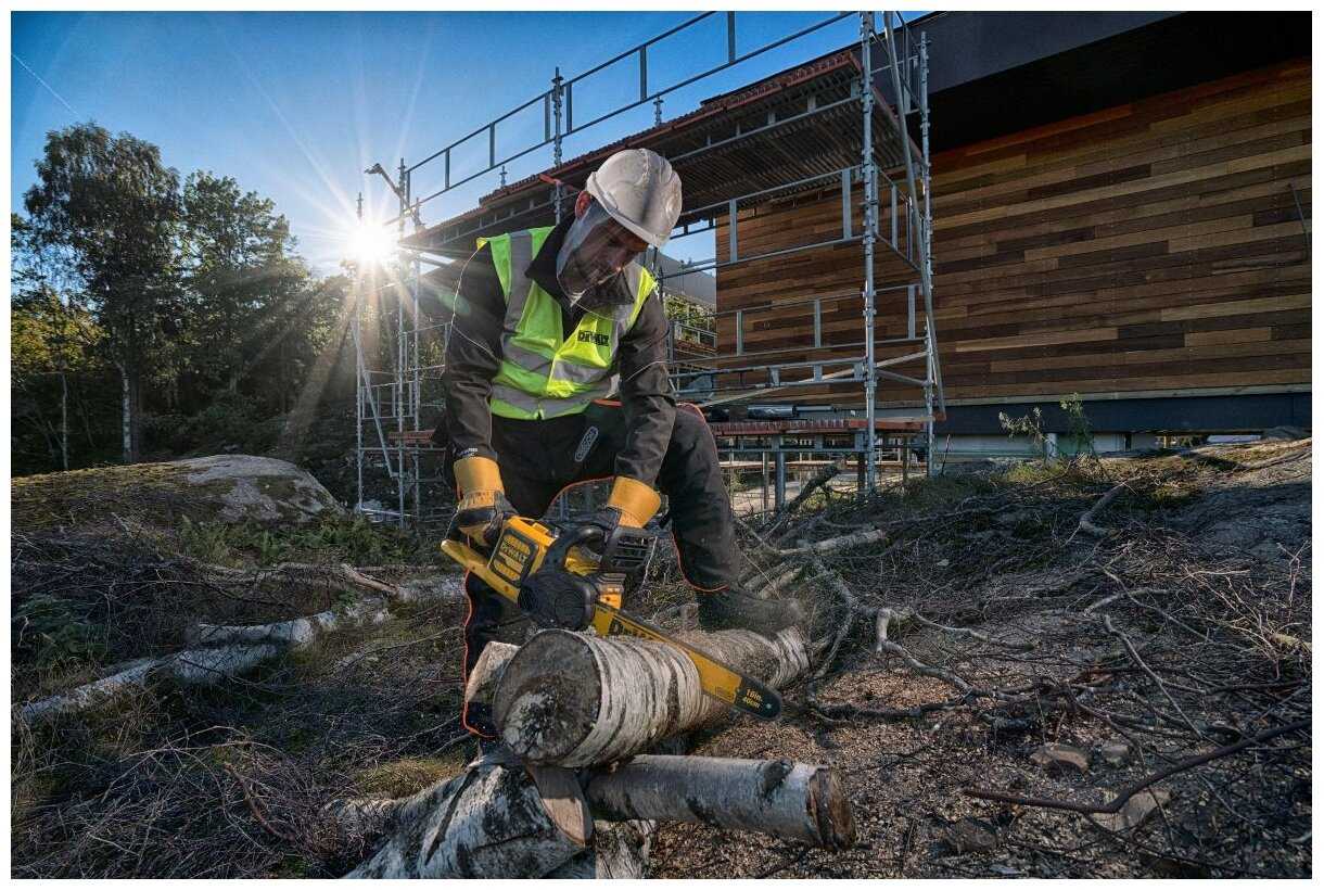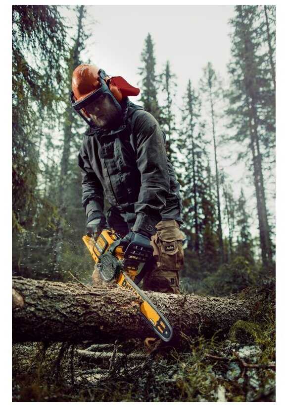 - - На распил одной березы средней толщины (27 см у основания) потребовалось 2 аккумулятора DCB547. Довольно тяжелая.