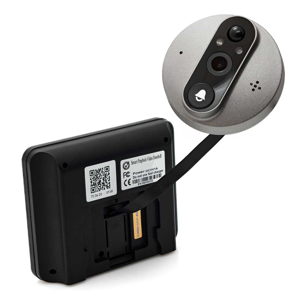 - + Очень крутой глазок, есть возможность подключаться с любой точки мира, работает через приложение, заряд держит долго, качество видео хорошее