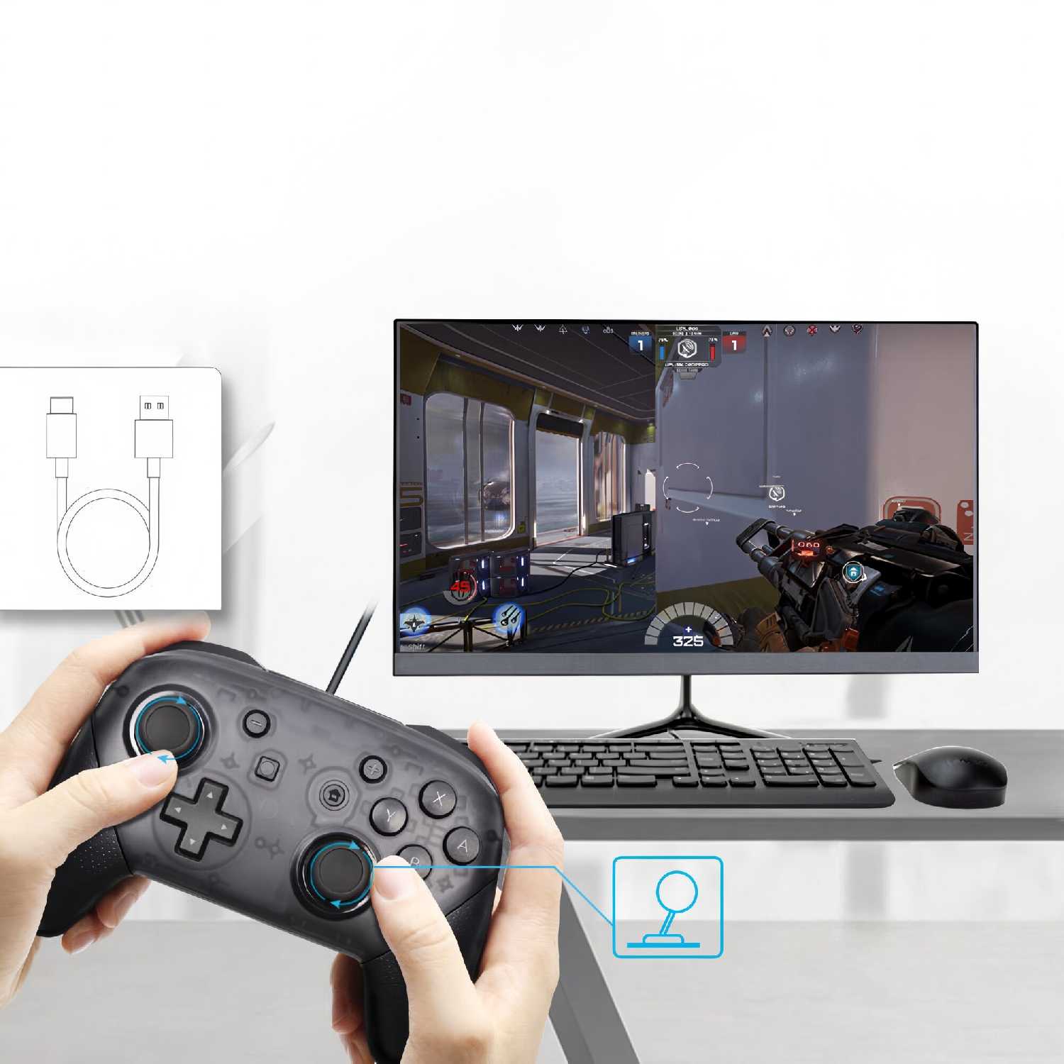 - + приятный джойстик, качество как у оригинала, ощущение кнопок и нажатий такое же