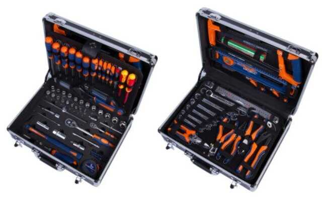 Аксессуары в комплекте : | бита-адаптер для торцевых головок, гибкий удлинитель для бит, держатель для бит, линейка, нож, ножовочные полотна по металлу, переходник для головок, рулетка, удлинитель для бит, удлинитель для головок, уровень, шарнир карданный для головок |