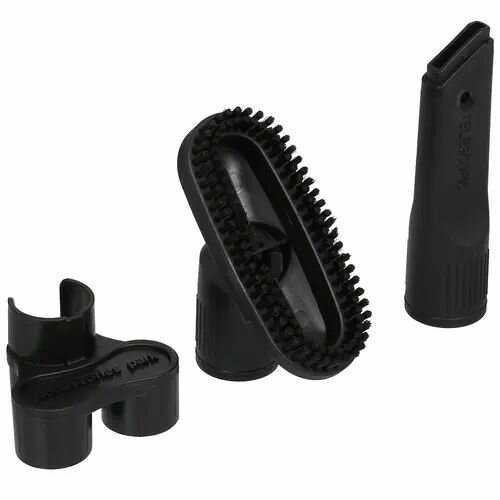Турбощётка неплохо собирает шерсть с мебели, но быстро забивается волосами. Узкая щелевая насадка удобна для обработки углов и плинтусов. Основная щётка с мягким ворсом хорошо скользит по ламинату, но её тонкий пластиковый корпус хрупок — колёсики отламываются при ударах о мебель. -