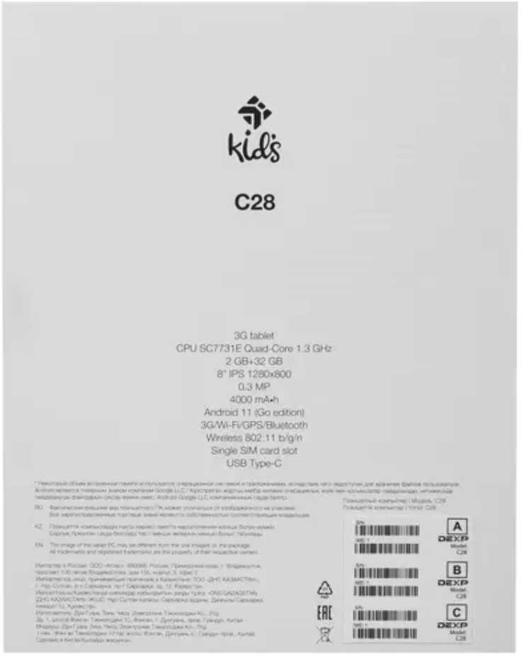 Характеристи DEXP C28 Kid's 3G (32 ГБ)