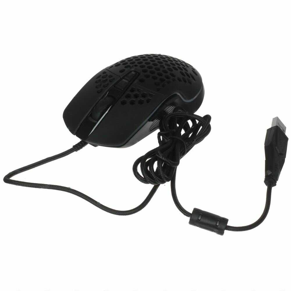 - Сотовый перфорированный верх корпуса придает современный "геймерский" вид и способствует небольшой вентиляции ладони.